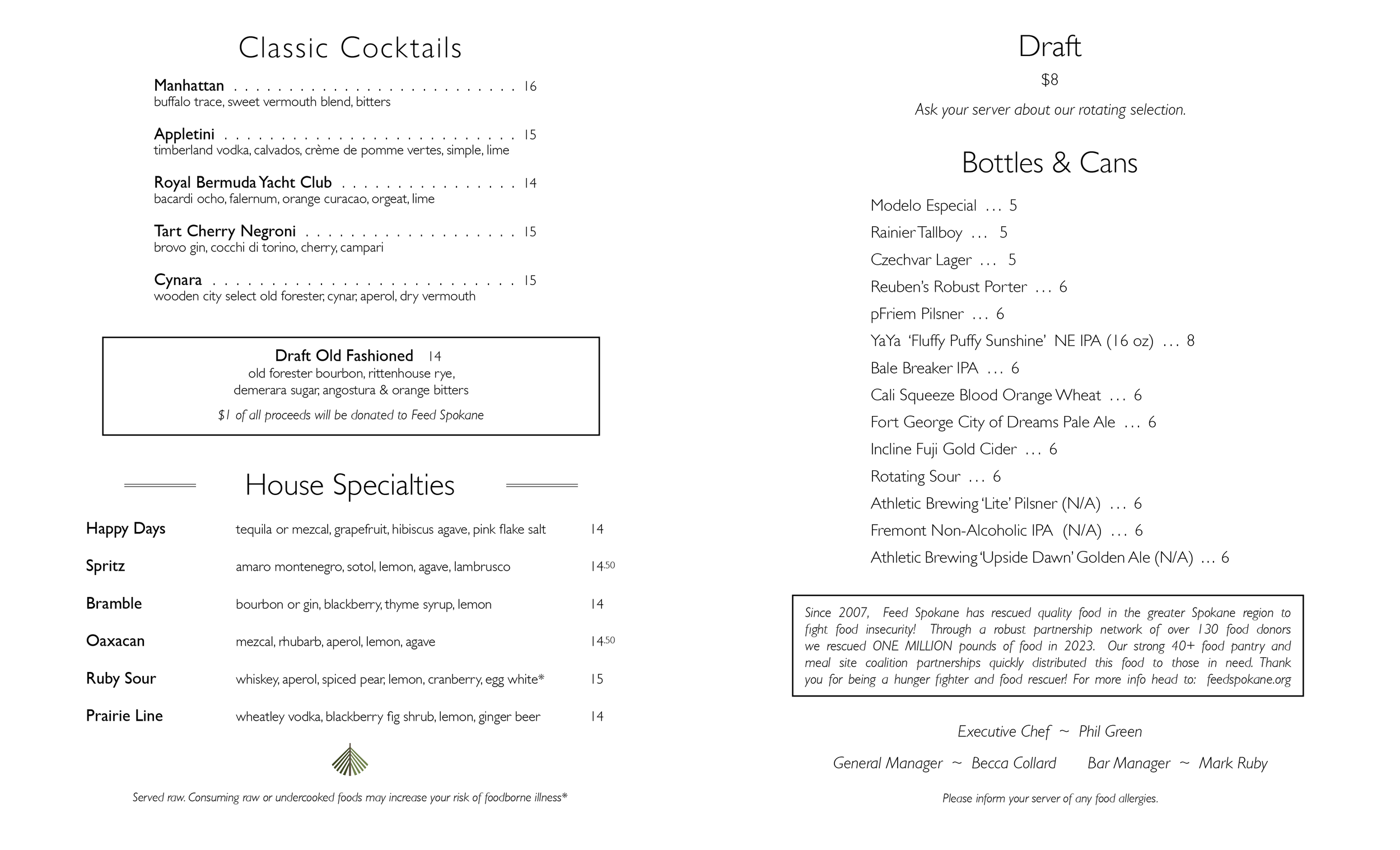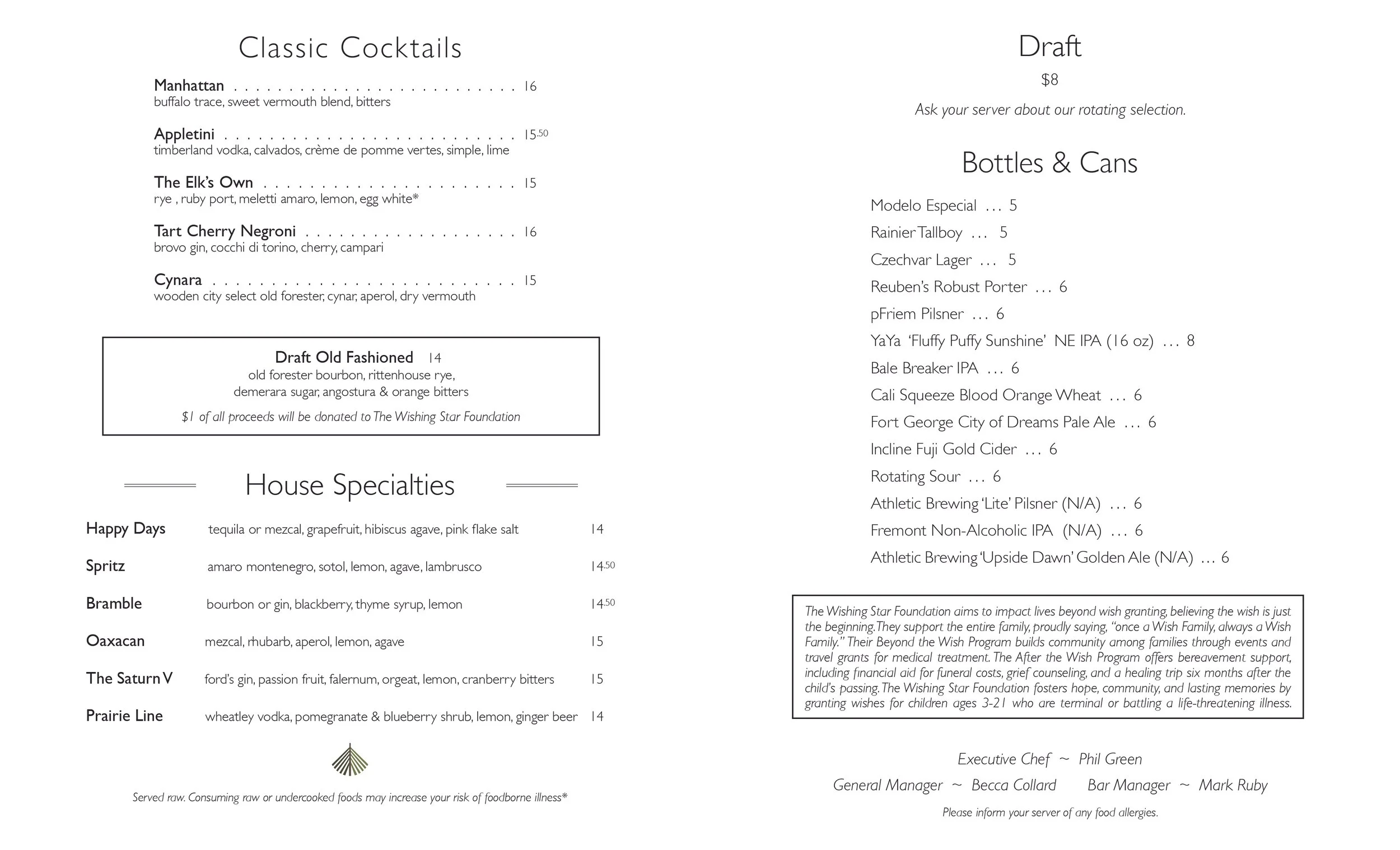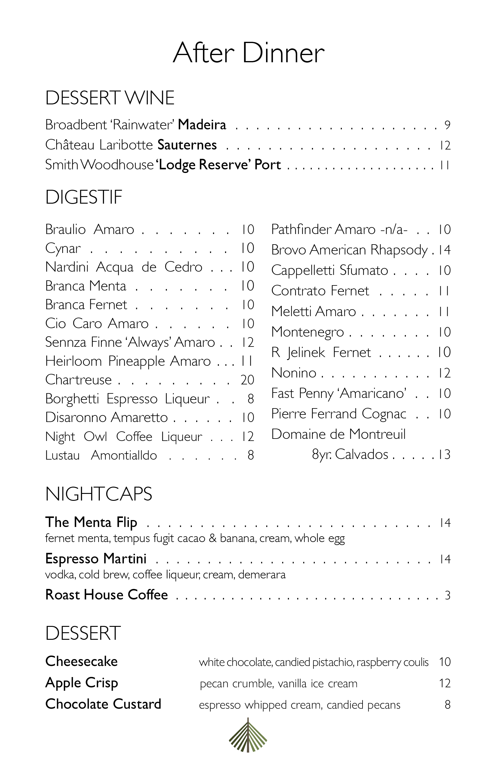 We have a $20 corkage fee and there is a $15 dessert fee for any outside consumables brought in